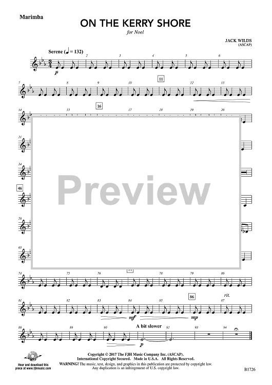 Digital Sheet Music for On the Kerry Shore - Marimba by Jack Wilds scored for Concert Band; id:508801