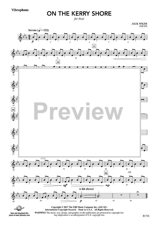 Digital Sheet Music for On the Kerry Shore - Vibraphone by Jack Wilds scored for Concert Band; id:508800
