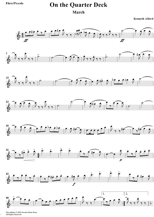 Digital Sheet Music for On the Quarter Deck - Flute & Piccolo by Kenneth J. Alford scored for Concert Band; id:281463