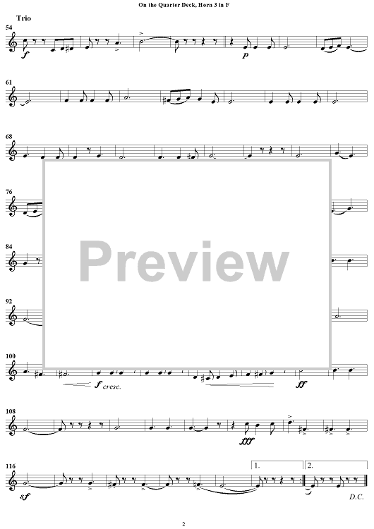 Digital Sheet Music for On the Quarter Deck - Horn 3 by Kenneth J. Alford scored for Concert Band; id:281143