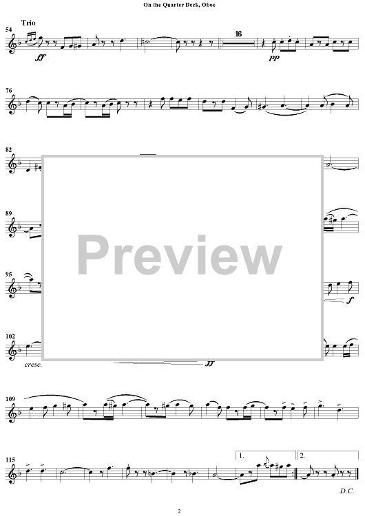 "On the Quarter Deck - Oboe" Sheet Music by Kenneth J. Alford