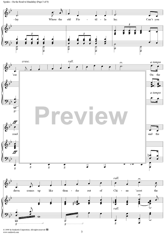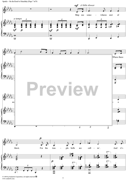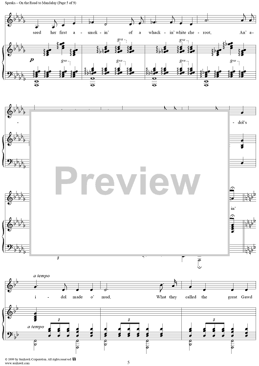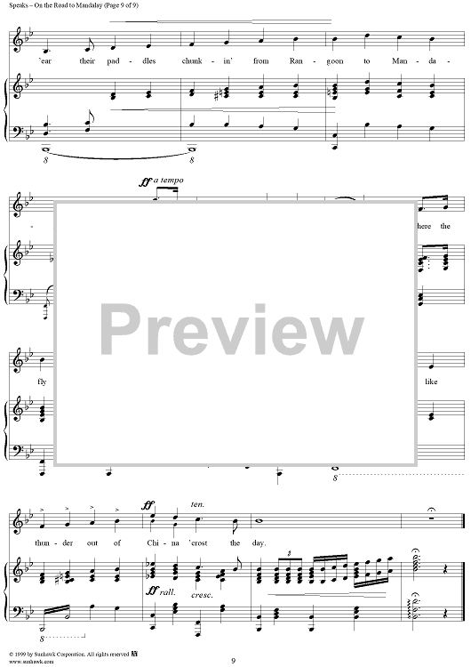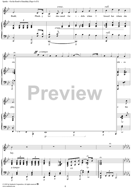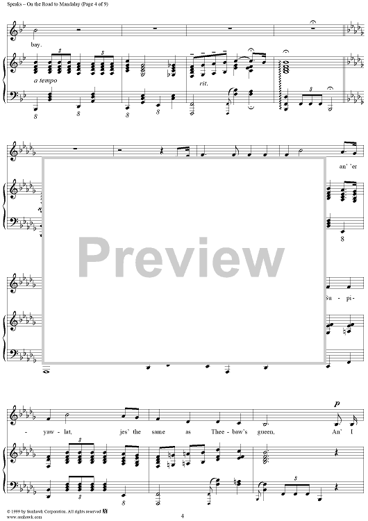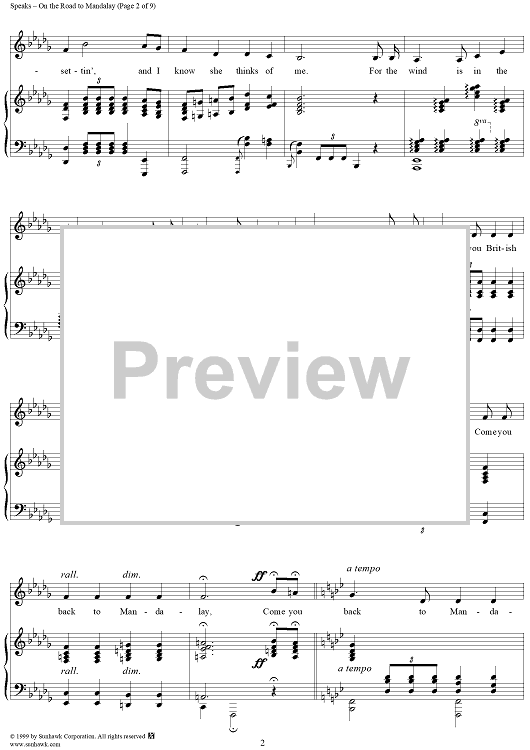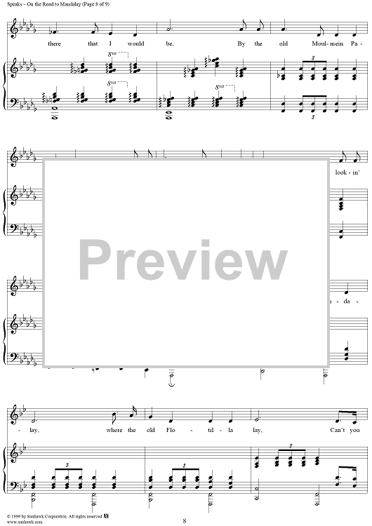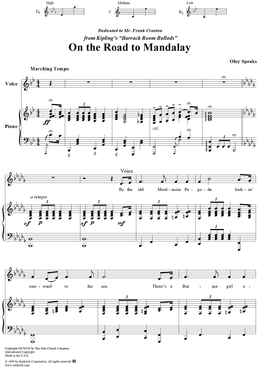 Digital Sheet Music for On the Road to Mandalay by O. Speaks scored for Piano/Vocal; id:263103