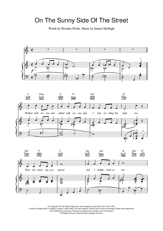 Digital Sheet Music for On The Sunny Side Of The Street by Frank Sinatra, Dorothy Fields, Jimmy McHugh scored for Piano/Vocal/Chords; id:376829