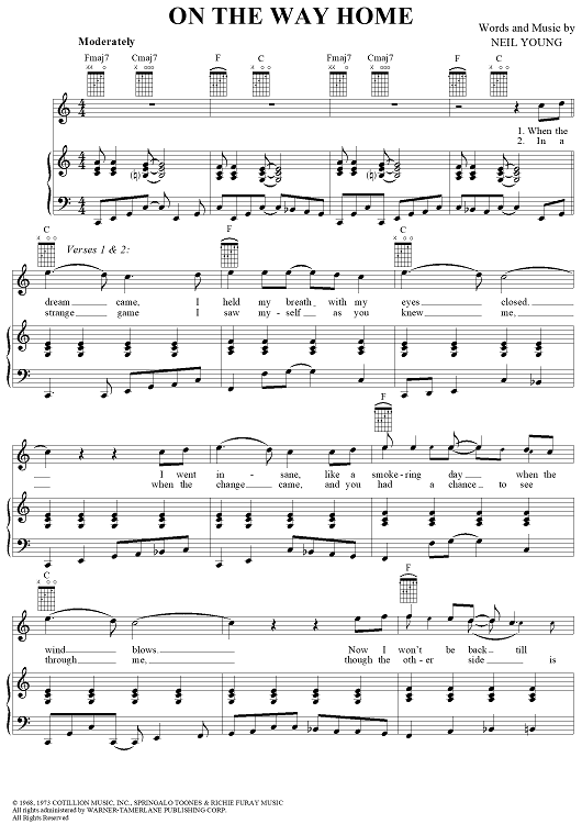 Digital Sheet Music for On the Way Home by Neil Young scored for Piano/Vocal/Chords; id:119903