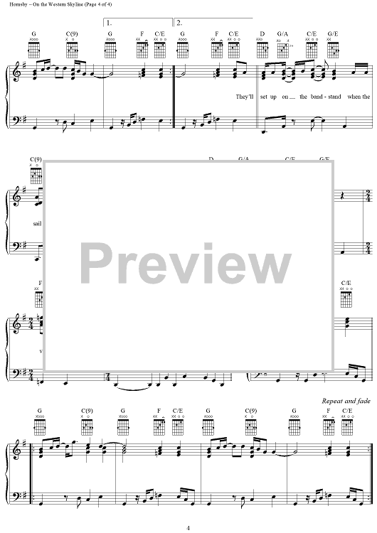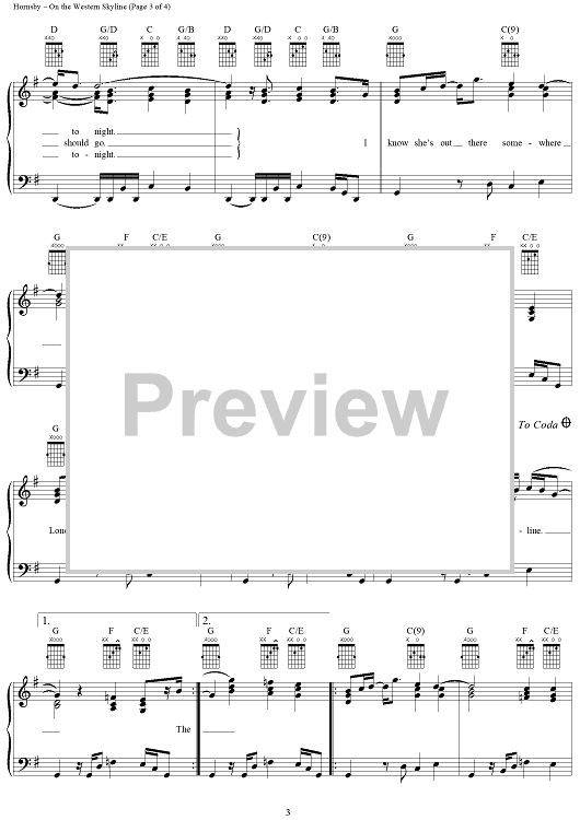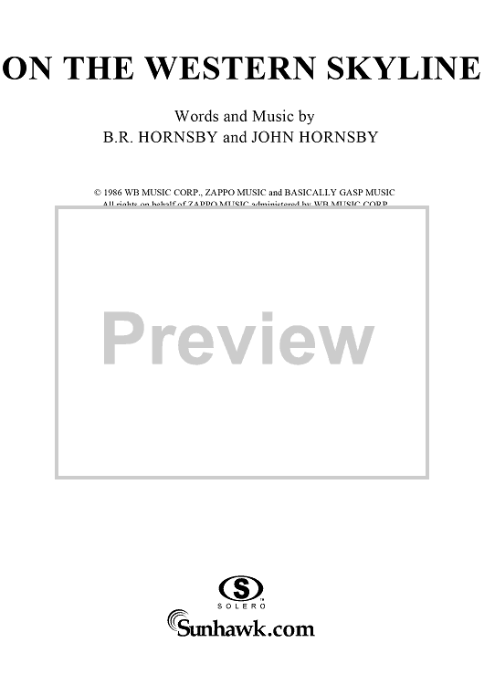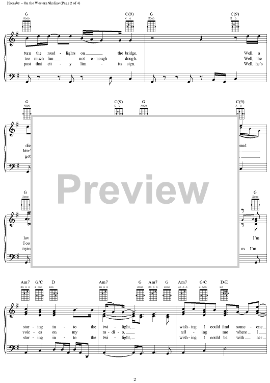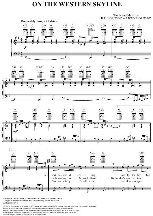 Digital Sheet Music for On the Western Skyline by Bruce Hornsby, John Hornsby scored for Piano/Vocal/Chords; id:266424