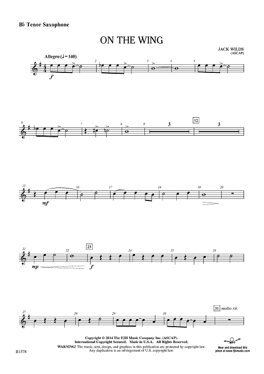 "On the Wing - Bb Tenor Sax" Sheet Music by Jack Wilds