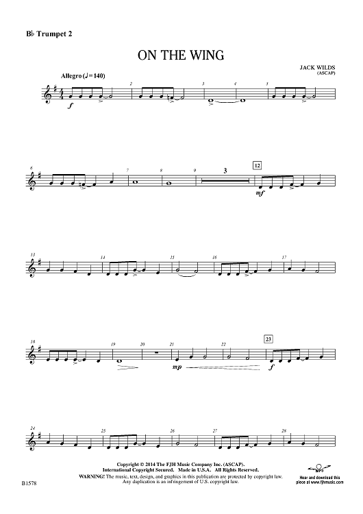 "On the Wing - Bb Trumpet 2" Sheet Music by Jack Wilds