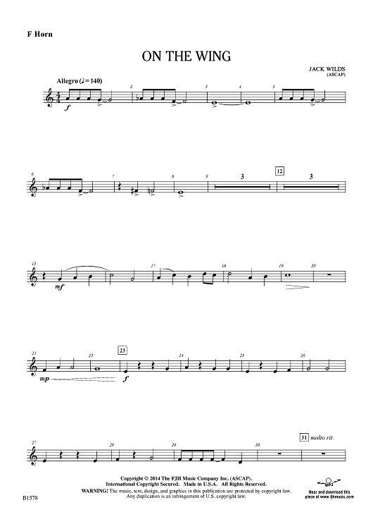 "On the Wing - F Horn" Sheet Music by Jack Wilds