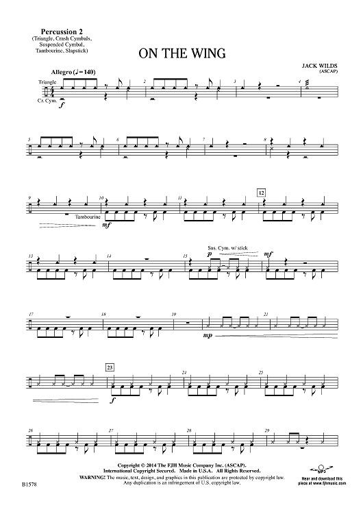 Digital Sheet Music for On the Wing - Percussion 2 by Jack Wilds scored for Concert Band; id:445676