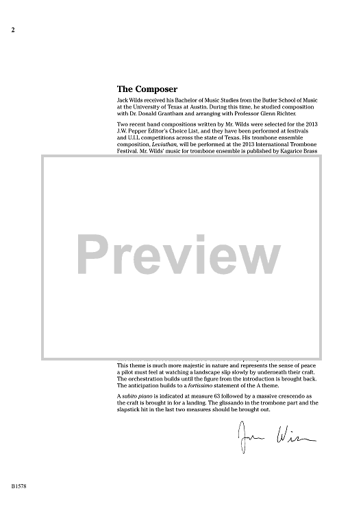 "On the Wing - Score Cover" Sheet Music by Jack Wilds