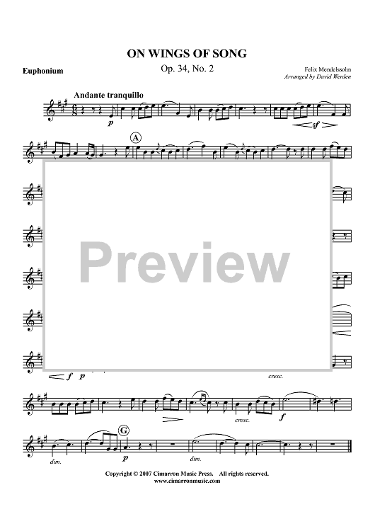 Digital Sheet Music for On Wings of Song Op. 34, No.2 - Euphonium BC/TC by Felix Mendelssohn, David Werden scored for Euphonium/Piano; id:416653