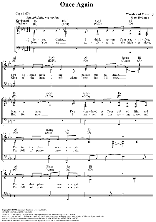 Digital Sheet Music for Once Again by Matt Redman scored for Piano/Vocal/Chords; id:109592