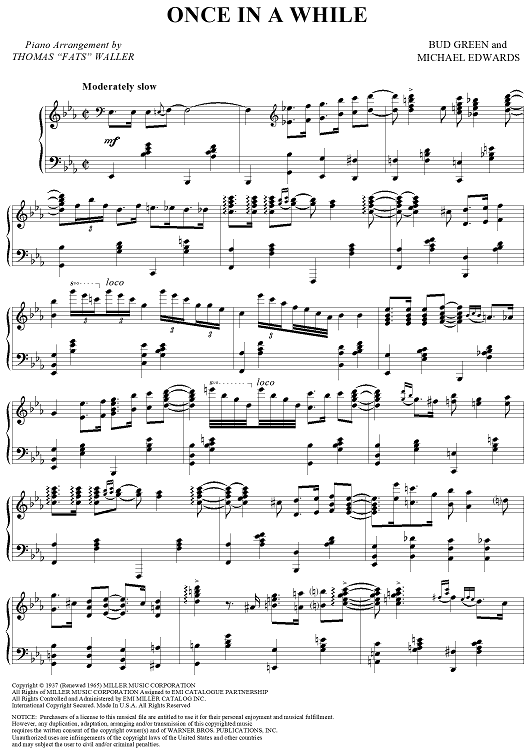 Digital Sheet Music for Once in a While by Fats Waller, Tommy Dorsey, Michael Edwards, Bud Green scored for Piano Solo; id:116364
