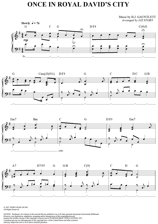 Digital Sheet Music for Once in Royal David's City by Liz Story, Henry J. Gauntlett scored for Piano Solo; id:268294
