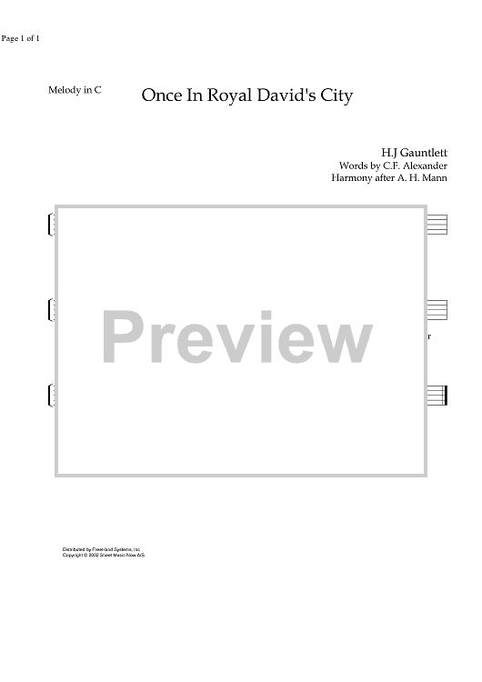 Digital Sheet Music for Once in Royal David's city by Henry J. Gauntlett scored for Piano/Vocal; id:337554