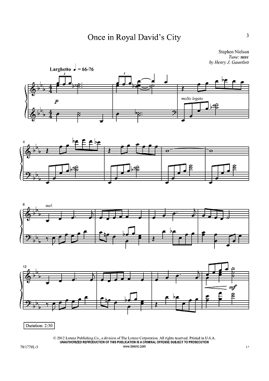 Digital Sheet Music for Once in Royal David’s City by Henry J. Gauntlett, Stephen Nielson scored for Piano Solo; id:437692