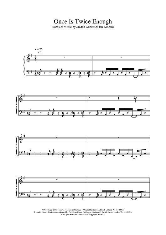 Digital Sheet Music for Once Is Twice Enough by Brand New Heavies scored for Piano/Vocal/Chords; id:376498