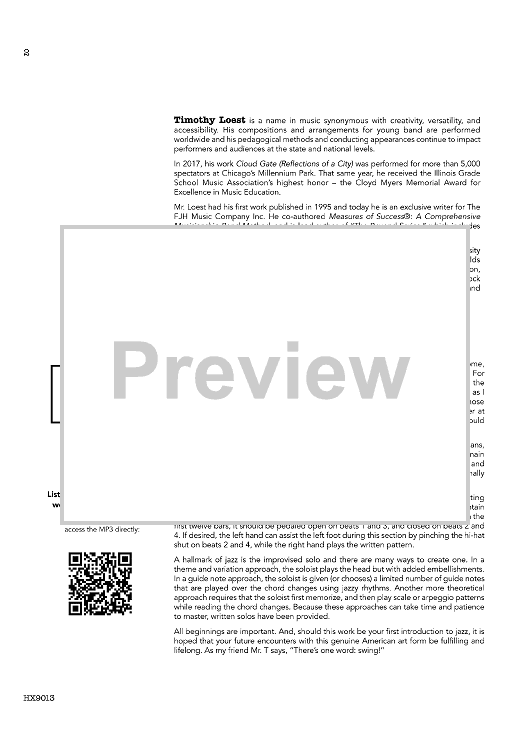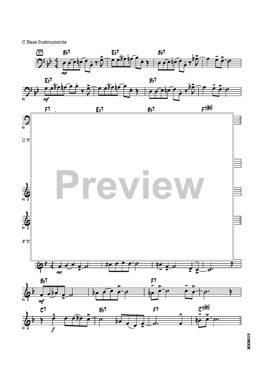 Now even your youngest players get to swing. And swing hard they will! This super achievable twelve-bar blues chart has it all, including a “head” that’s as catchy as its title, an open solo section complete with backgrounds and optional written-out solos, a stop-time soft shout chorus, and a full blast restatement of the main theme. Get ready to wail! Top trumpet note: D5.