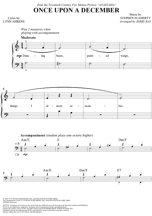 Digital Sheet Music for Once Upon a December by Stephen Flaherty, Lynn Ahrens, Jerry Ray scored for Easy Piano/Vocal; id:286181