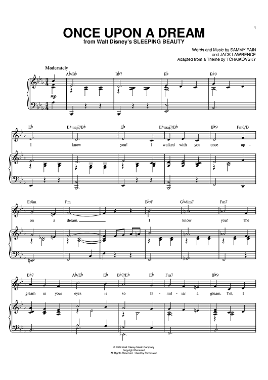 Digital Sheet Music for Once Upon A Dream by Sammy Fain, Jack Lawrence, Mary Costa scored for Piano/Vocal/Chords; id:379328