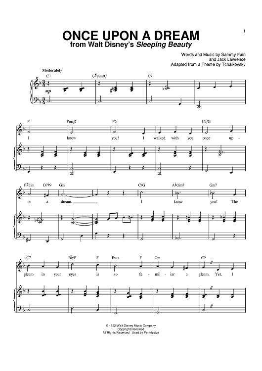 Digital Sheet Music for Once Upon A Dream by Sammy Fain, Jack Lawrence, Mary Costa scored for Piano/Vocal/Chords; id:381230