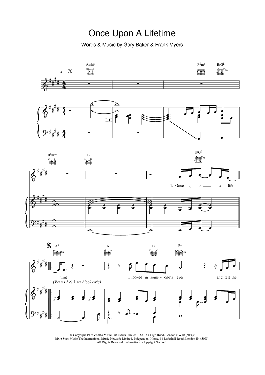 Digital Sheet Music for Once Upon A Lifetime by Gary Baker, Frank Myers, Ronan Keating scored for Piano/Vocal/Chords; id:377131