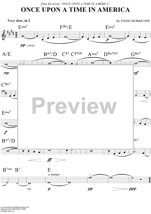 Digital Sheet Music for Once Upon a Time in America by Ennio Morricone scored for Lead Sheet; id:116492