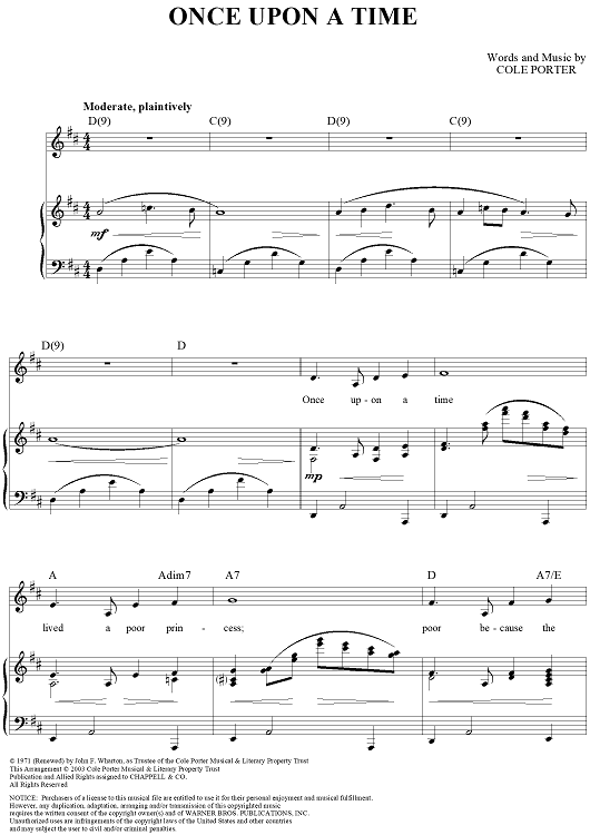Digital Sheet Music for Once Upon a Time by Cole Porter scored for Piano/Vocal/Chords; id:303133