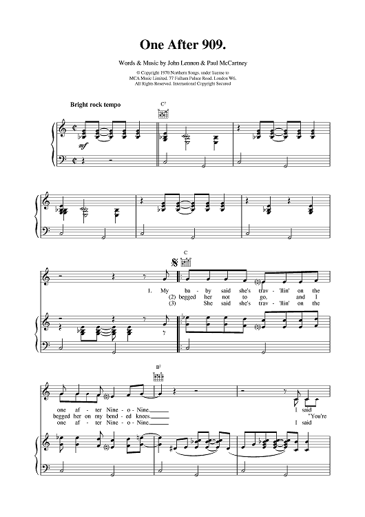 Digital Sheet Music for One After 909 by Paul McCartney, The Beatles, John Lennon scored for Piano/Vocal/Chords; id:380105