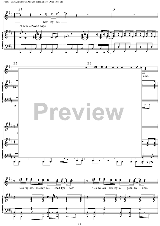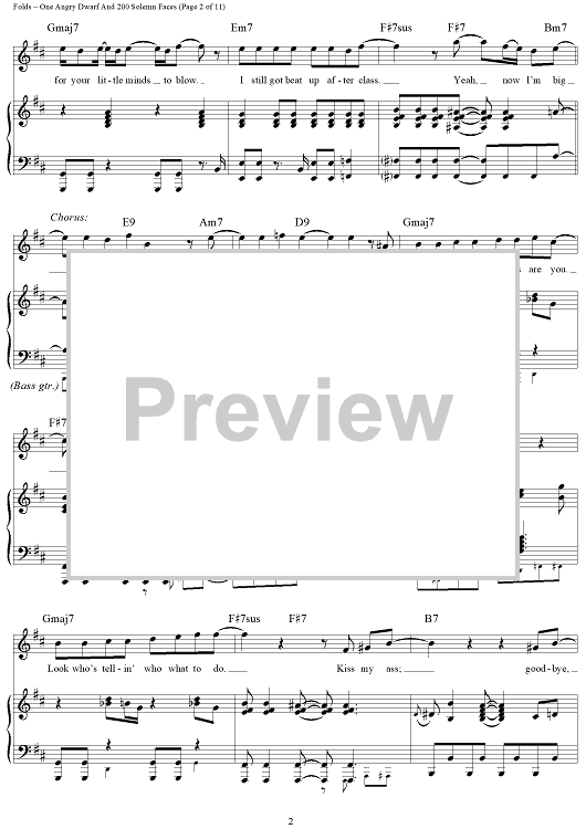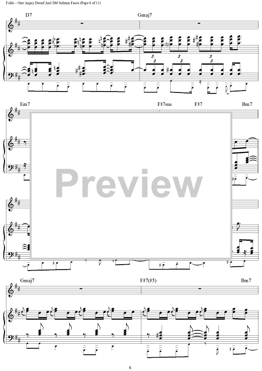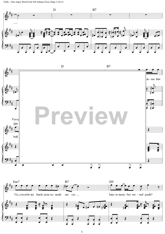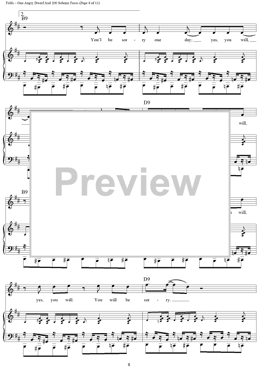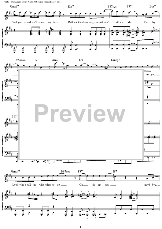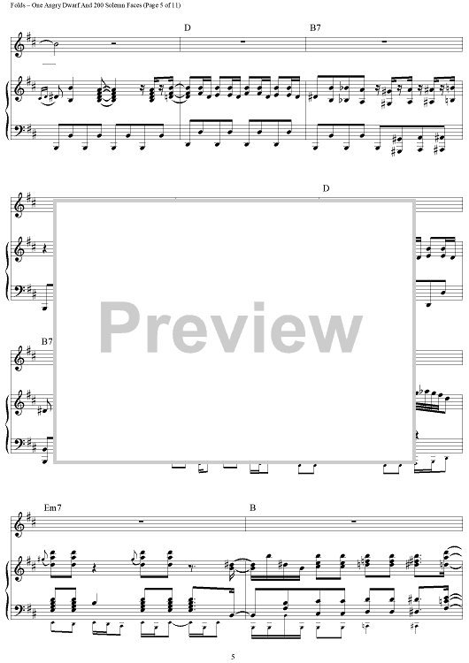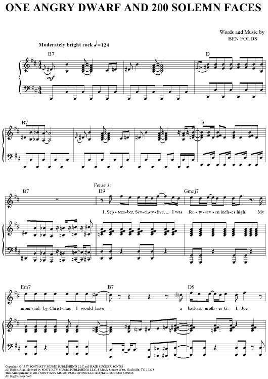 Digital Sheet Music for One Angry Dwarf and 200 Solemn Faces by Ben Folds scored for Piano/Vocal/Chords; id:456479