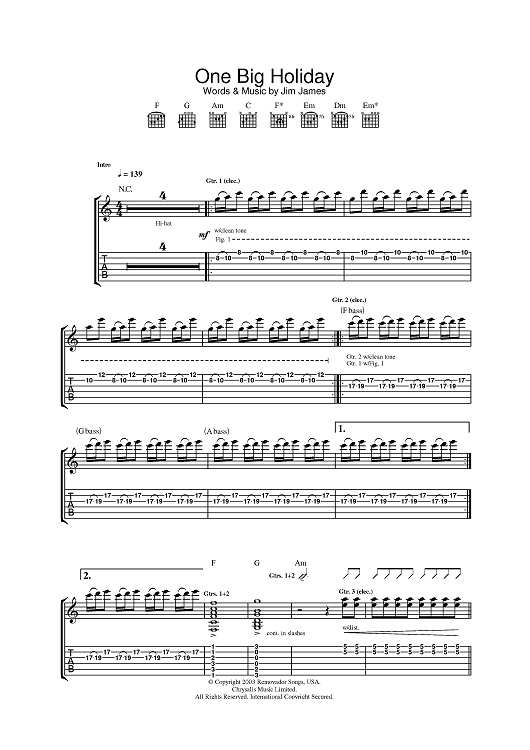 Digital Sheet Music for One Big Holiday by Jim James, My Morning Jacket scored for Guitar Tab; id:381301