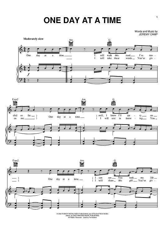 Digital Sheet Music for One Day At A Time by Jeremy Camp scored for Piano/Vocal/Chords; id:373219