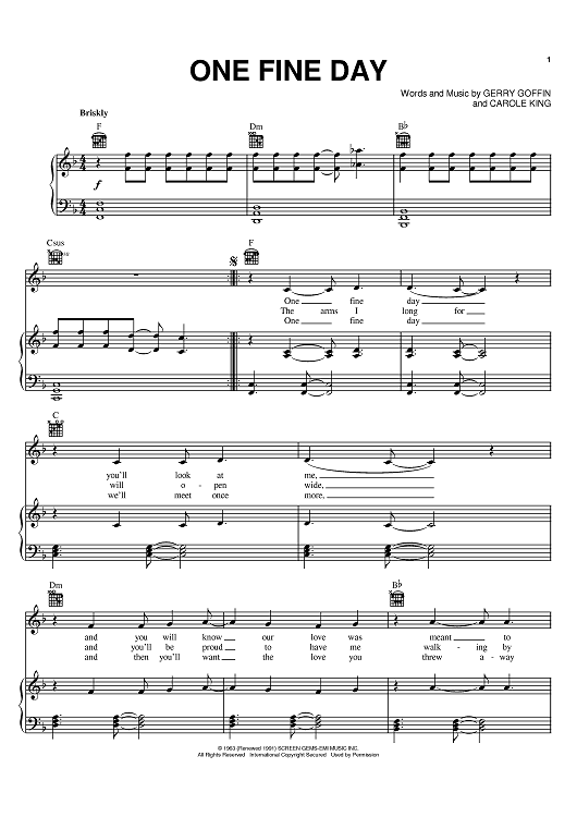 Digital Sheet Music for One Fine Day by Carole King, Rita Coolidge, Gerry Goffin, The Chiffons scored for Piano/Vocal/Chords; id:368750