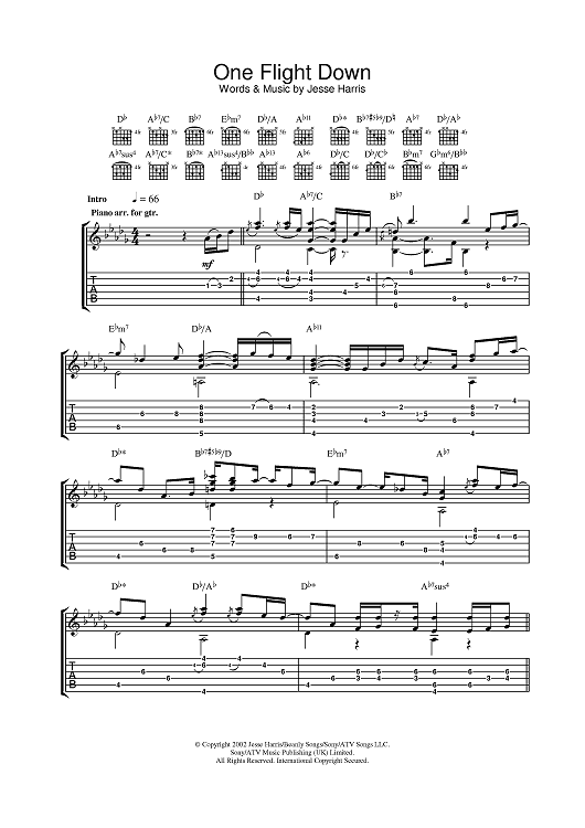 Digital Sheet Music for One Flight Down by Norah Jones scored for Guitar Tab; id:377619