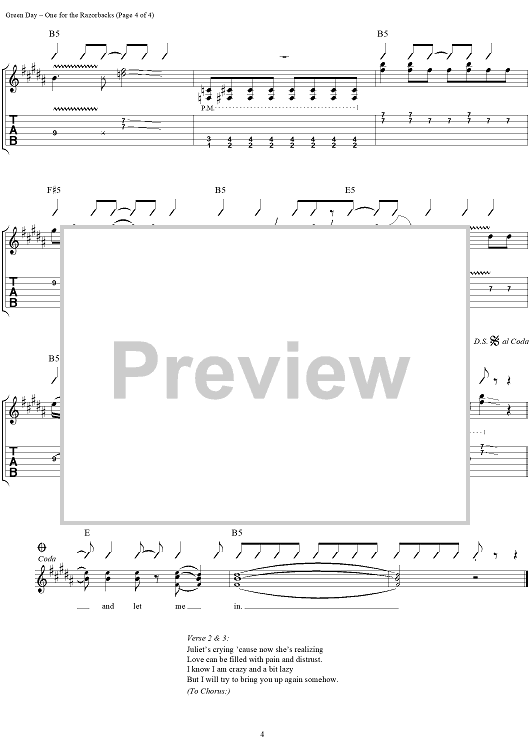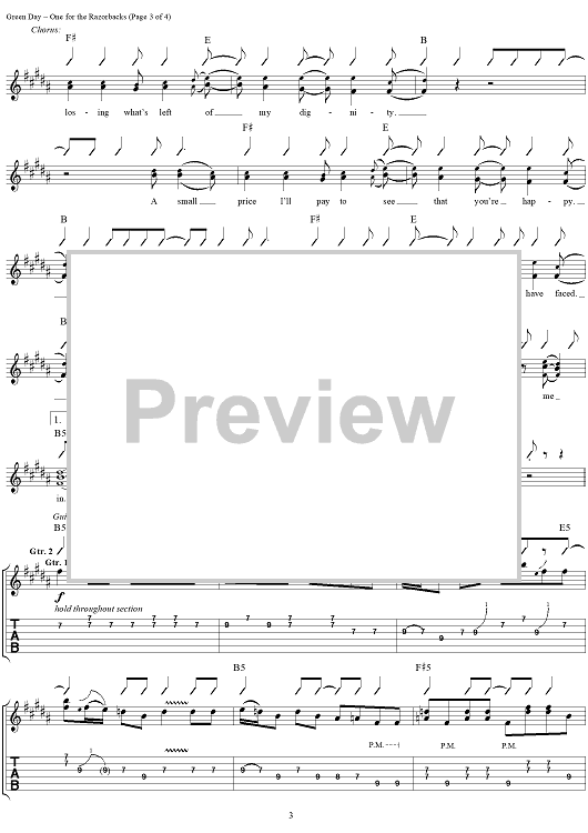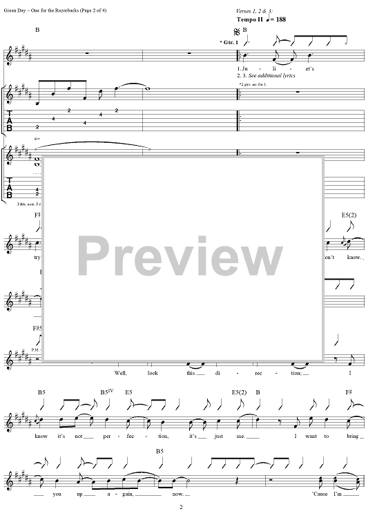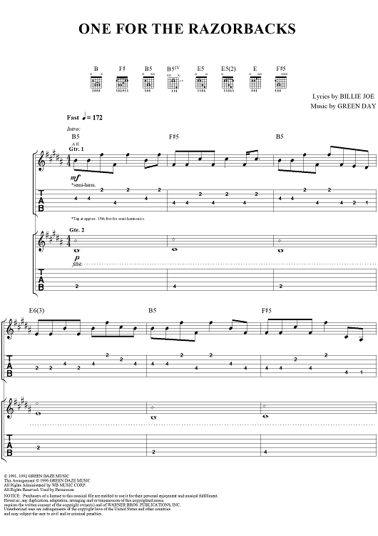Digital Sheet Music for One for the Razorbacks by Billie Joe Armstrong, Green Day scored for Guitar Tab/Vocal; id:240697