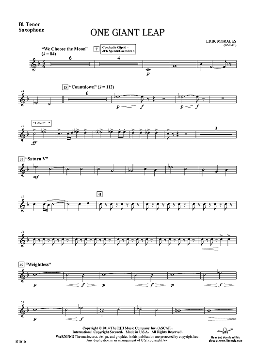 Digital Sheet Music for One Giant Leap - Bb Tenor Sax by Erik Morales scored for Concert Band; id:448011