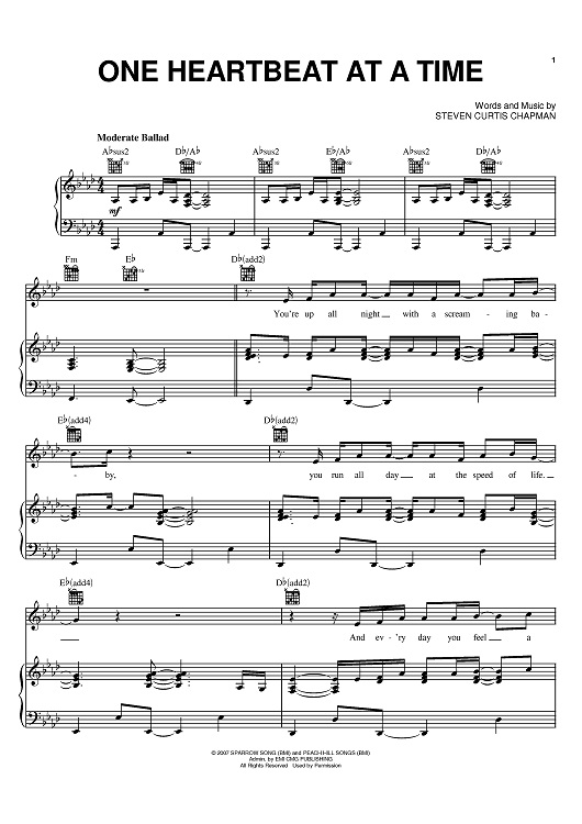 Digital Sheet Music for One Heartbeat by Steven Curtis Chapman scored for Piano/Vocal/Chords; id:401983