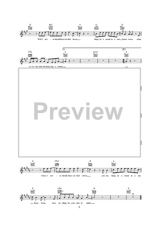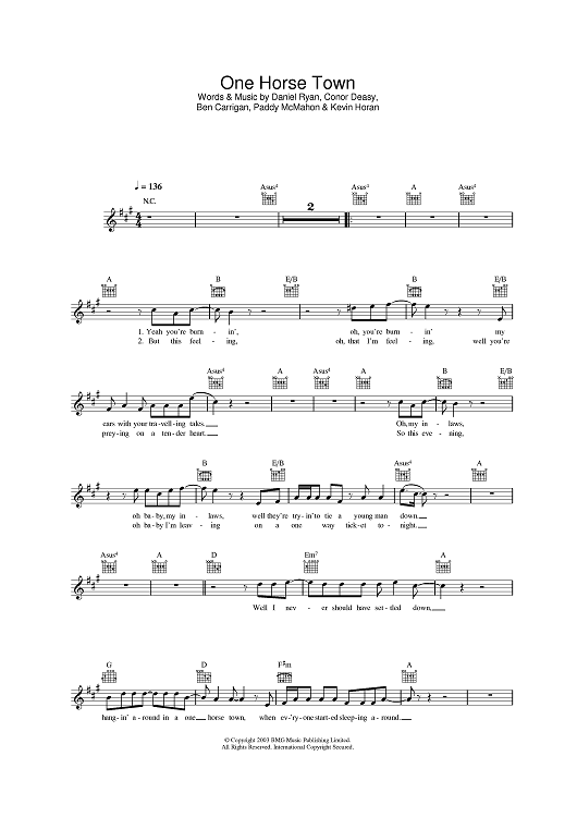 Digital Sheet Music for One Horse Town by Ben Carrigan, Conor Deasy, Daniel Ryan, The Thrills scored for Lead Sheet; id:382861