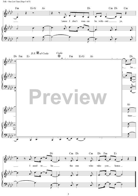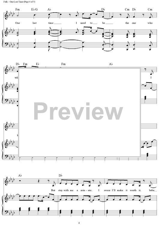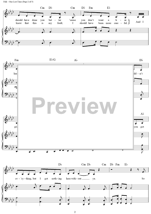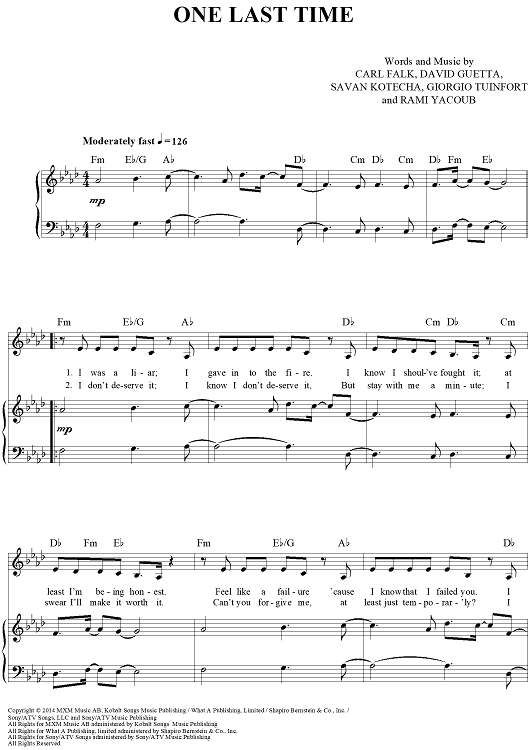 Digital Sheet Music for One Last Time by Savan Kotecha, Rami Yacoub, Giorgio Tuinfort, Carl Falk, David Guetta, Ariana Grande scored for Piano/Vocal/Chords; id:448485