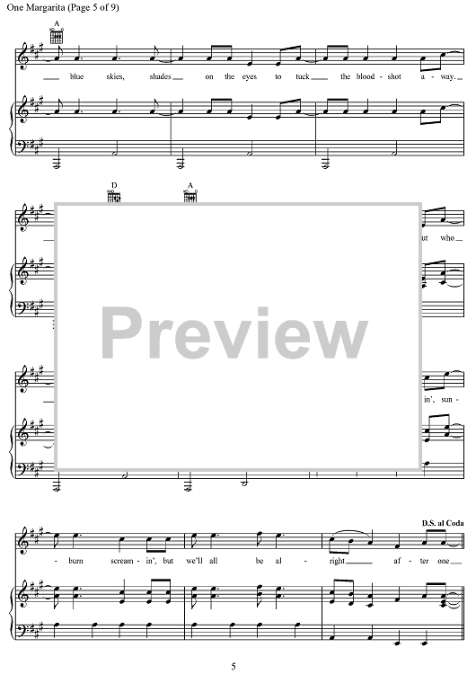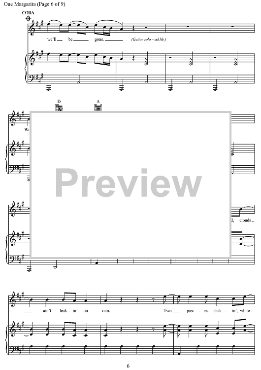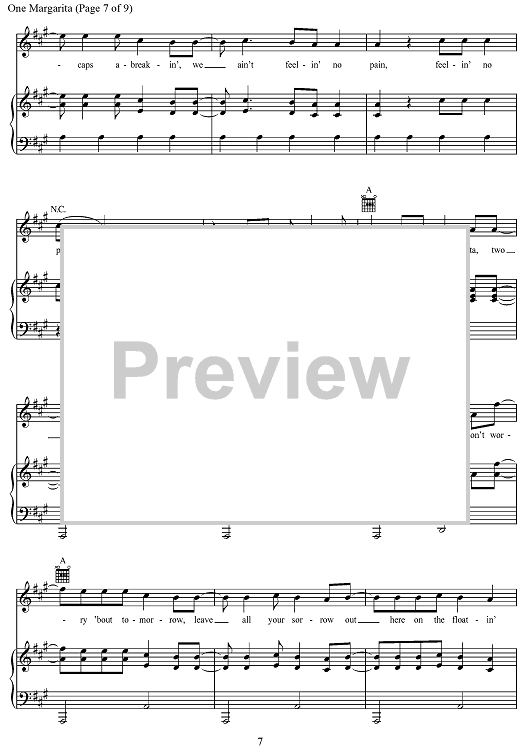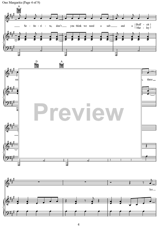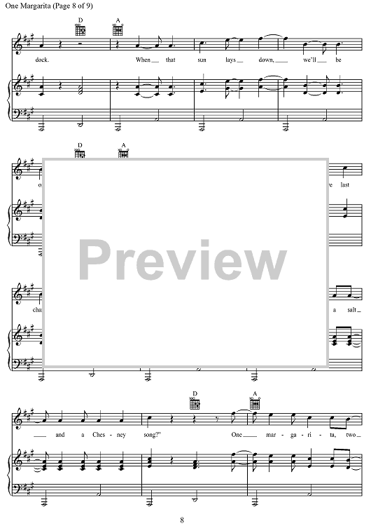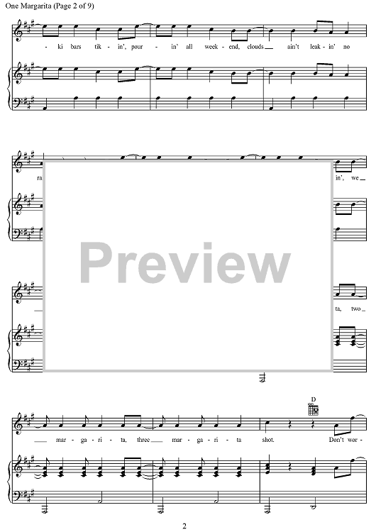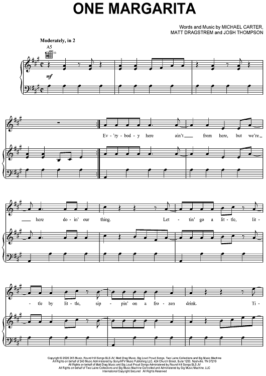 Digital Sheet Music for One Margarita by Joshua Thompson, Luke Bryan, Michael Carter, Matthew Dragstrem scored for Piano/Vocal/Chords; id:468504