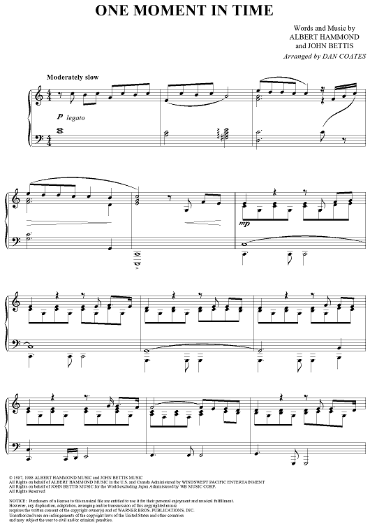 Digital Sheet Music for One Moment In Time by Dan Coates, Albert Hammond, John Bettis scored for Piano Solo; id:267286