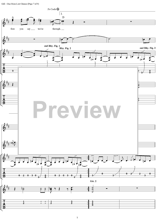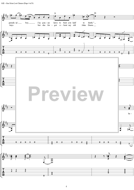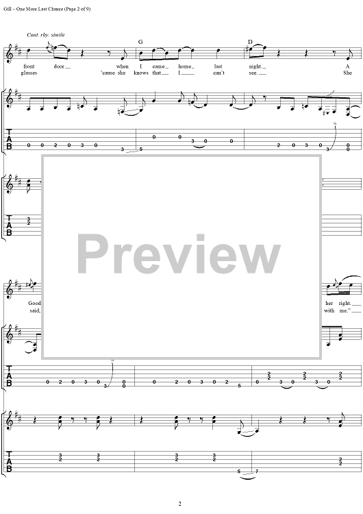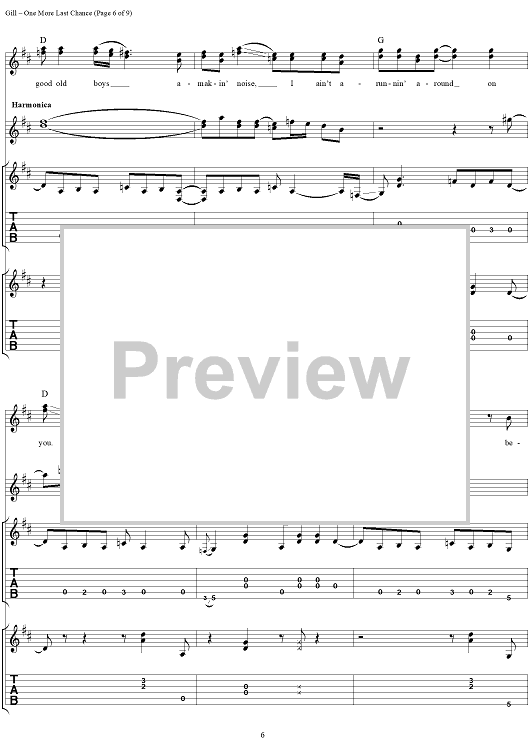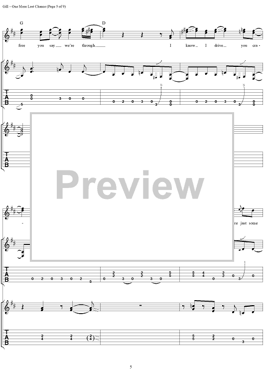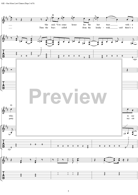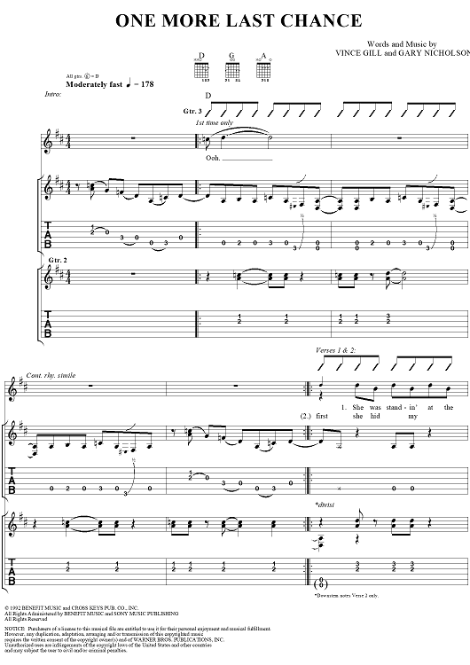 Digital Sheet Music for One More Last Chance by Vince Gill, Pete Wasner scored for Guitar Tab/Vocal; id:120677