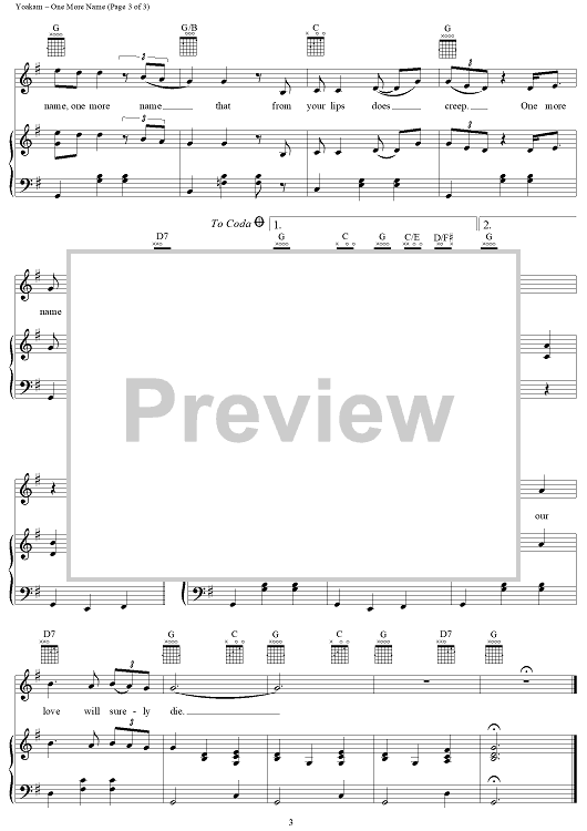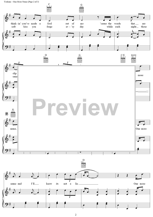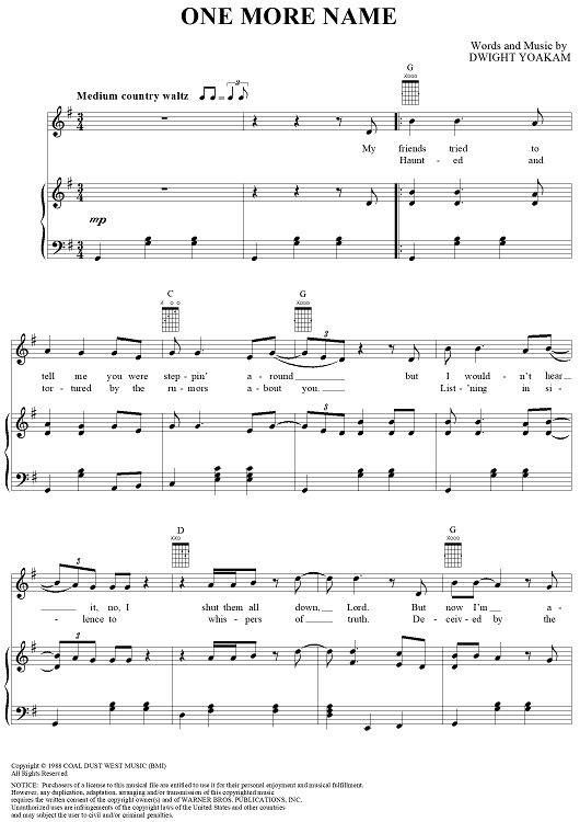 Digital Sheet Music for One More Name by Dwight Yoakam scored for Piano/Vocal/Chords; id:124249