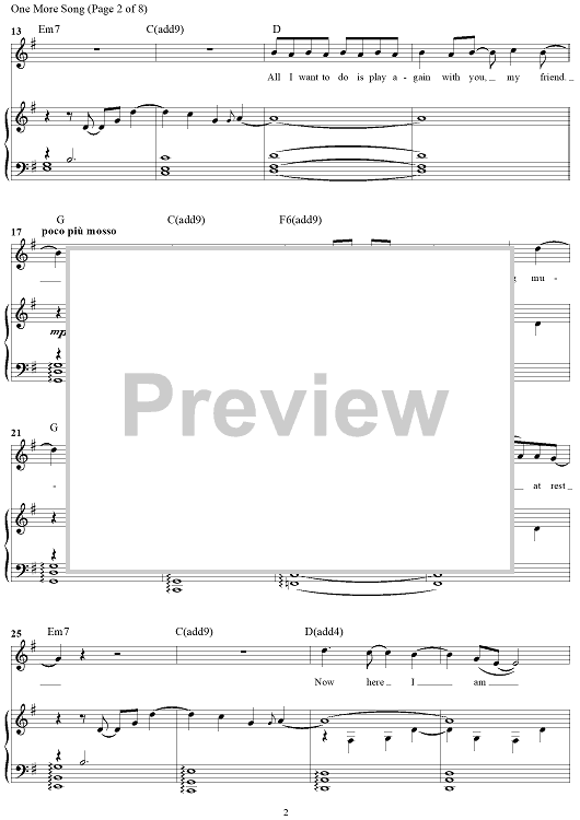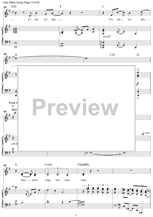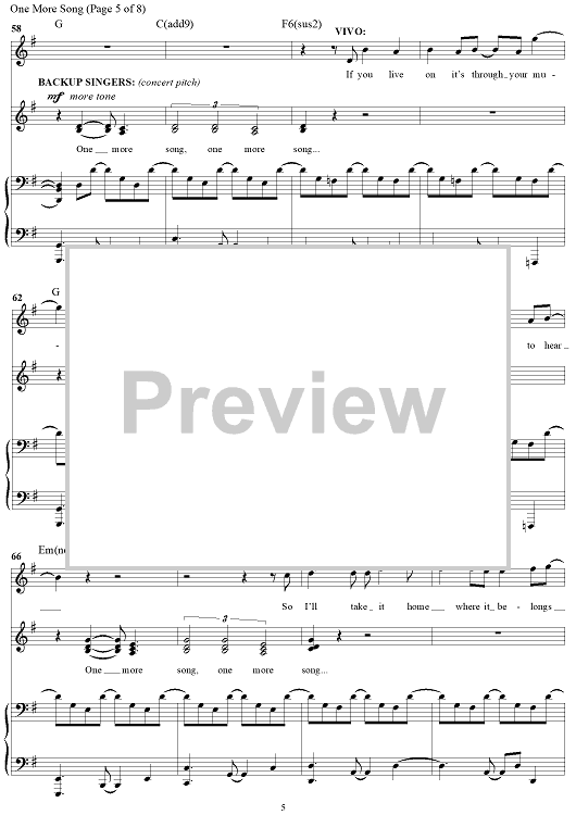 Digital Sheet Music for One More Song by Lin-Manuel Miranda, Alex Lacamoire scored for Piano/Vocal/Chords; id:469914