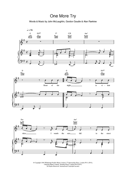 Digital Sheet Music for One More Try by 911, Goudie,G, Jonathan McLaughlin scored for Piano/Vocal/Chords; id:379815