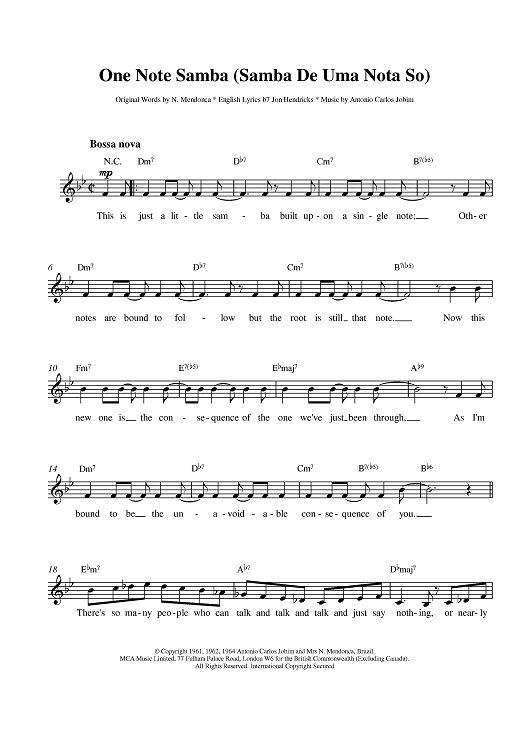 Digital Sheet Music for One Note Samba by Jon Hendricks, Antonio Carlos Jobim scored for Lead Sheet; id:380878