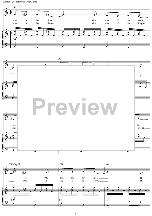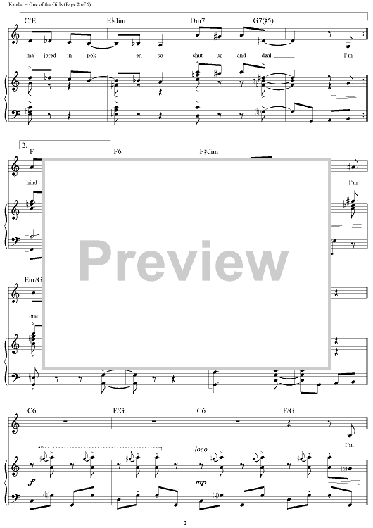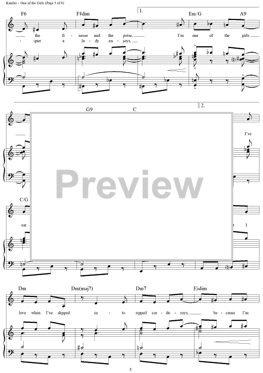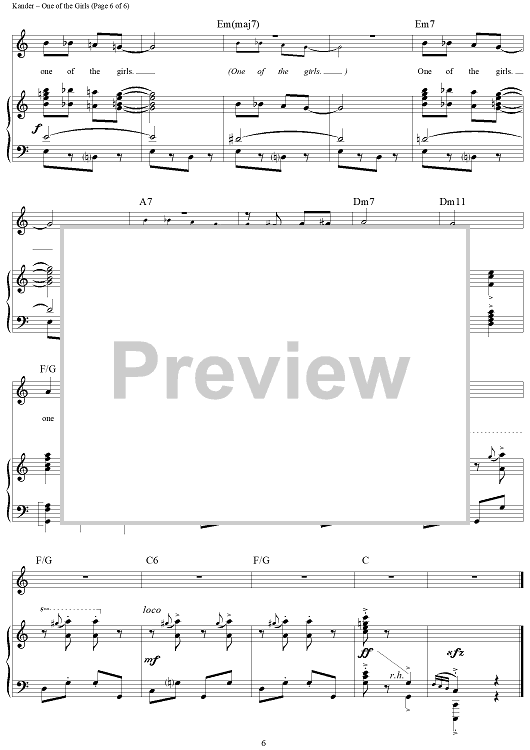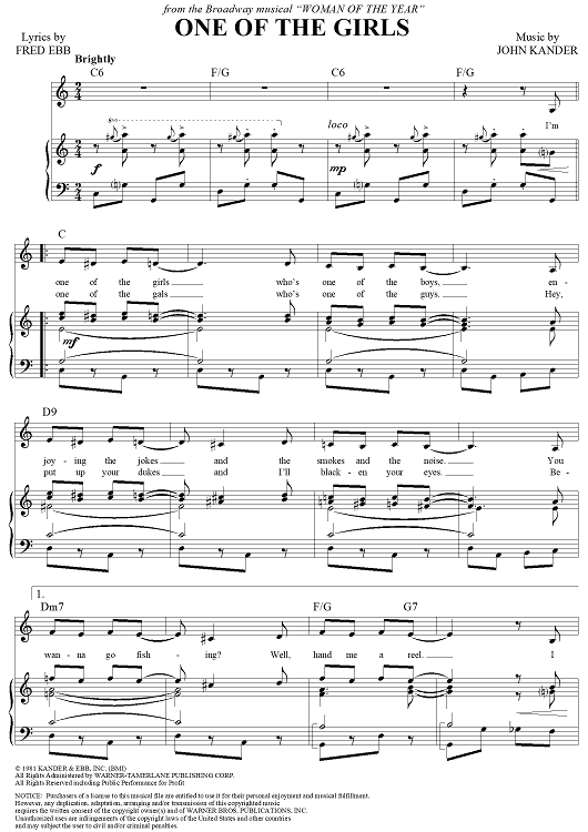 Digital Sheet Music for One of the Girls by John Kander, Fred Ebb scored for Piano/Vocal/Chords; id:250000