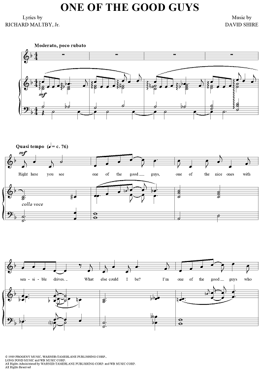 Digital Sheet Music for One Of The Good Guys by David Shire, Richard Maltby Jr. scored for Piano/Vocal; id:256832