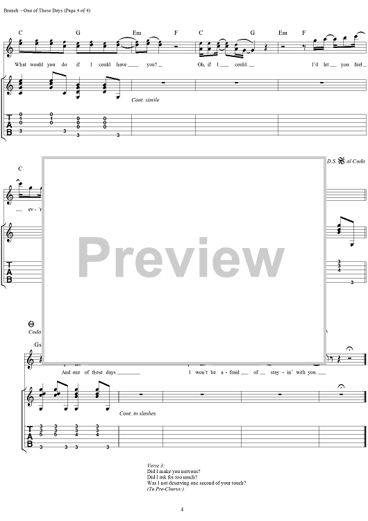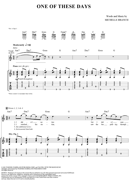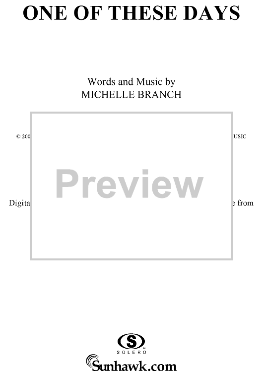 "One of These Days" Sheet Music by Michelle Branch