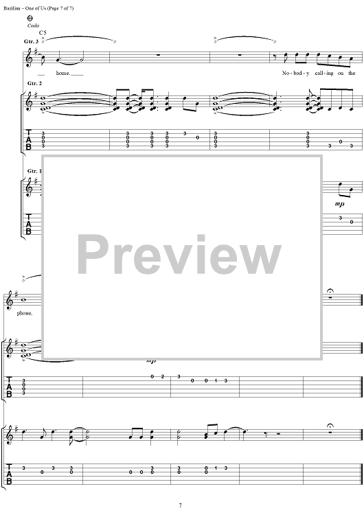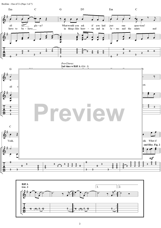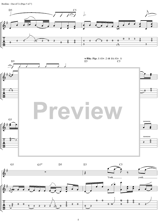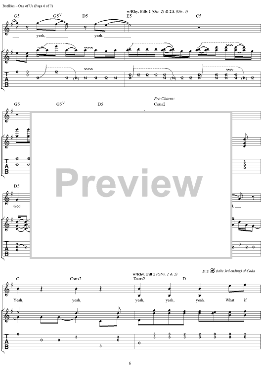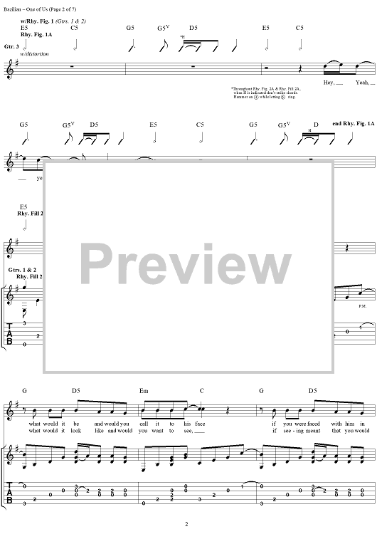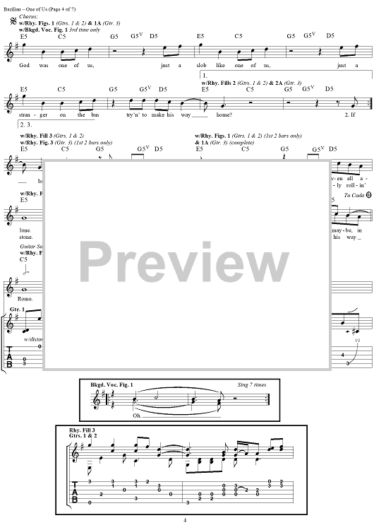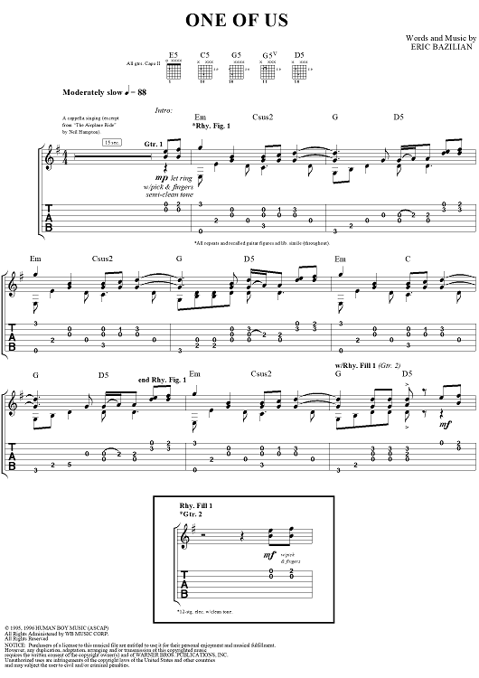 Digital Sheet Music for One of Us by Joan Osborne, Eric Bazilian scored for Guitar Tab/Vocal; id:119958